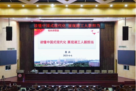 易兵提到,党的二十大报告将教育、科技、人才三大战略一体规划,高校要以为党育人、为国育才的政治担当,培养德智体美劳全面发展的社会主义建设者和接班人。他表示,我们要深入贯彻新发展理念,积极肩负起加快探索应用型本科发展的新模式,勇立发展潮头的历史使命,全面落实“三高四新”战略定位和使命任务,在新的历史起点上推动长株潭一体化取得新的重大突破,集中精力培养高素质复合型应用人才,充分发挥“工”字学科专业优势,奋力实现办学层次取得突破性提升,努力推动公司各项事业高质量发展。