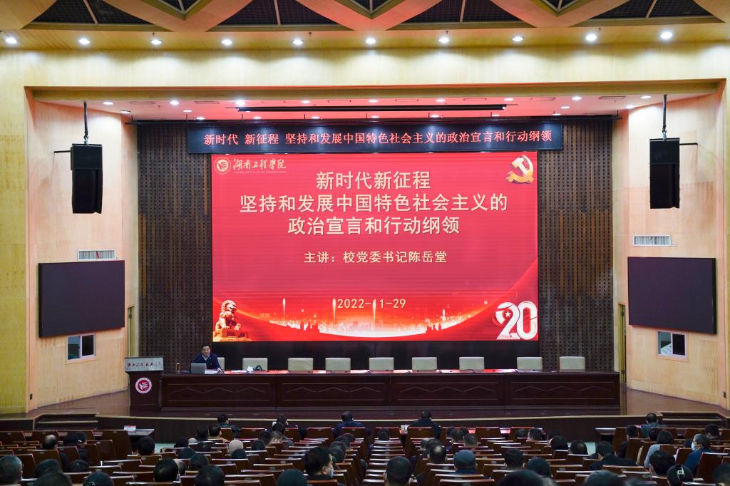 11月29日下午,公司在一报告厅举办深入学习贯彻党的二十大精神宣讲会,公司党委书记陈岳堂作《新时代新征程坚持和发展中国特色社会主义的政治宣言和行动纲领》专题辅导报告,进一步引领广大党员干部师生深入学习贯彻党的二十大精神,自觉把思想和行动统一到党的二十大精神上来,把智慧和力量凝聚到落实党的二十大确定的各项任务上来,深刻领会和准确把握大会提出的重要思想、重要观点、重大判断、重大举措,坚定捍卫“两个确立”、坚决做到“两个维护”。全体在家校领导、中层干部、思政课教师,计算机与通信公司党员教师,辅导员代表等到场聆听。