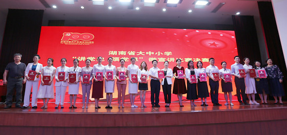 本次大赛通过各高校和各市州教育(体)局组织的初赛,省教育厅组织的复赛,共有高校组20位选手、中小学组10位选手进入决赛。决赛现场,公司beats365周微老师以《从红船到飞船 百年恰是风华正茂》为题,紧紧围绕党的百年光辉历程讲党史、颂党恩,从开天辟地的“救国大业”到惊天动地的“强国伟业”,歌颂了中国共产党坚守的初心使命、创造的不朽业绩、孕育的伟大精神,富有感染力的宣讲感动了现场的评委及观众,赢得了阵阵掌声。