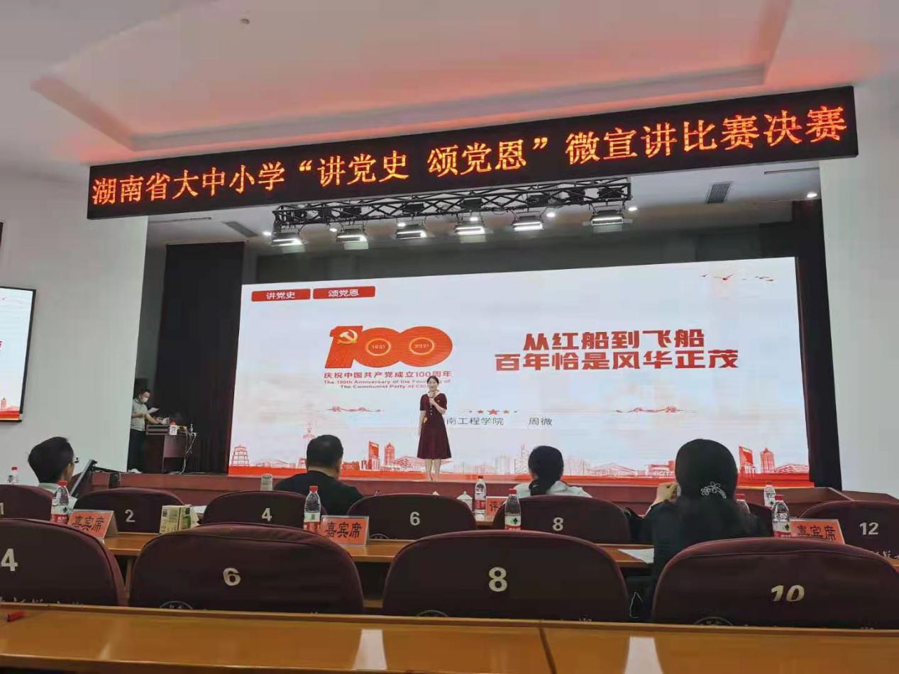 6月19日,由湖南省教育厅主办、湖南师范大学承办、湖南教育电视台协办的“湖南省大中小学‘学党史 颂党恩’微宣讲比赛决赛”在湖南师范大学国际学术报告厅举行,公司beats365教师周微荣获高校组决赛二等奖。
