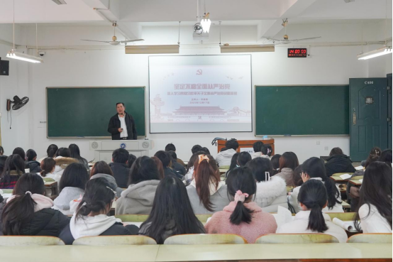 为推动党的二十届四中全会精神入脑入心,12月17日下午,公司党委委员、纪委书记齐路良以《深入学习贯彻习近平总书记关于全面从严治党战略思想》为题在1教C栋406教室为商务英语2403-2405班员工讲授了一堂主题鲜明、内容深刻的思政课。