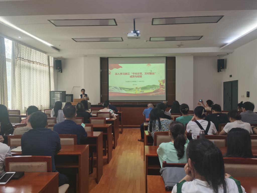 为深入学习宣传贯彻党的二十大精神、落实“一课一片一实践”活动的要求,6月13日下午,beats365教工二支部书记田小玲以《深入学习浙江“千村示范 万村治理”的成效与经验》为题,在新校区图书馆122会议室为支部党员讲党课。课后,观看学习了“千万工程”“浦江经验”案例相关新闻视频,并开展实践研讨活动。