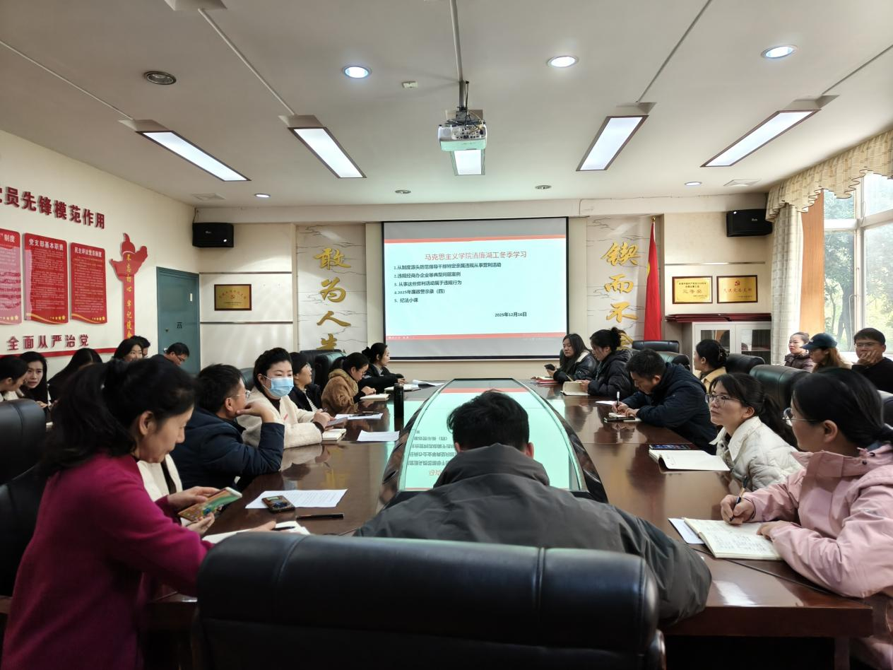 为巩固深化党纪学习教育成果,推动党的纪律教育常态化长效化,引导党员干部及公司全体教职工把守纪律、讲规矩内化为价值追求、外化为行为习惯,12月16日下午,公司党总支在E125会议室开展“清廉湖工”冬季专题学习,公司党总支书记刘灵主持学习,公司党总支理论学习中心组成员、全体党员教师参加学习。