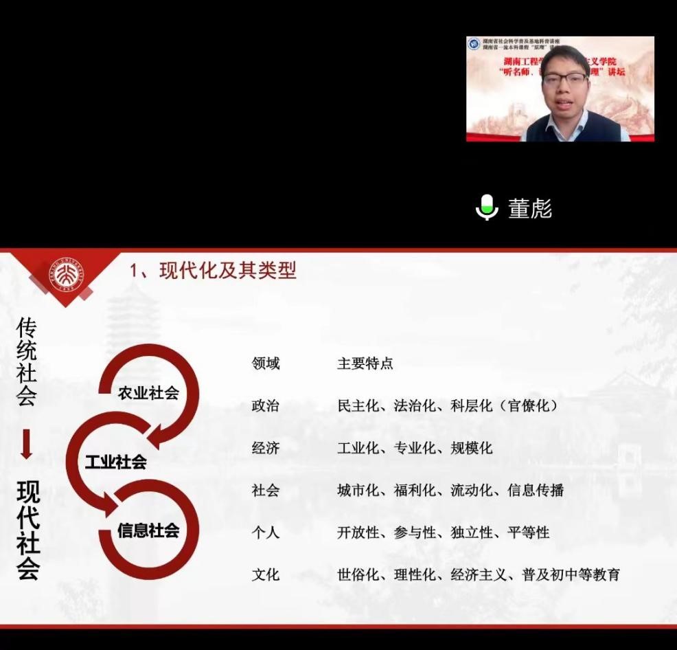 为深入学习贯彻党的二十大精神,落实好《关于做好2022年湖南省社科普及工作通知》要求,12月7日下午,beats365举办“听名师 讲原著 悟原理”专题讲座。本次讲座特邀北京大学研究员董彪博士在线主讲,beats365经理邓学源主持。