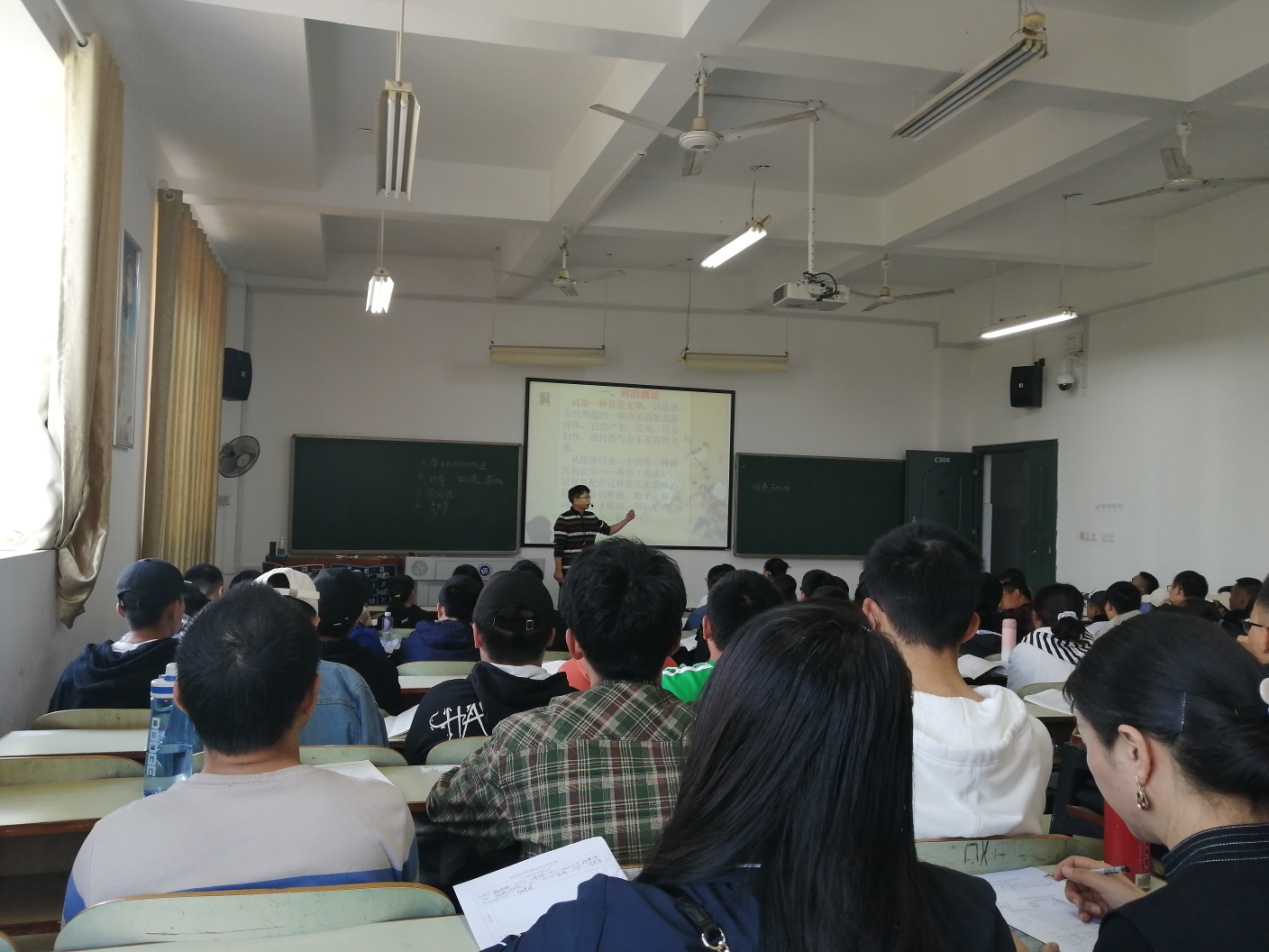 2020年11月9日上午第3节课,公司在主校区教学楼C—506教室开展了一场《大学语文》教学公开课活动,授课教师为唐林轩老师,授课班级为微电子工程2003、2004班,授课内容为《唐、五代词》。