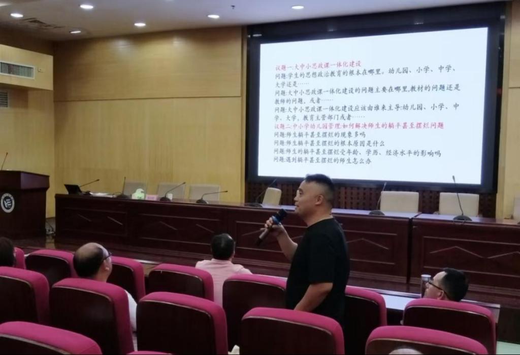 为深入探讨大中小学思政课一体化建设的前沿议题,公司于2024年8月8日晚,在图书馆二楼报告厅、E105会议室、E125会议室同步召开了一场以“大中小学思政课一体化建设”为主题的专题研讨会。本次研讨会聚焦思政课程建设中存在的关键问题、主导方向及立德树人的根本目标,旨在凝聚共识,深化理论与实践的融合,推动思政教育体系的创新与发展。
