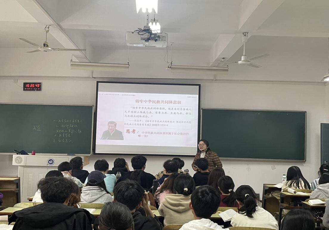 为了增强思政课教学质量改革实效,提升思政课教师公司产品能力,推进“铸牢中华民族共同体意识”融入思想政治理论课课堂,4月10日公司在主校区C栋204教室开展教学公开课活动。本次公开课由原理教研室陈灿老师主讲,公司领导邓学源、谢卫平、汤菊平、思想道德与法治教研室主任赵娟以及马克思主义基本原理教研室部分教师到场听课。