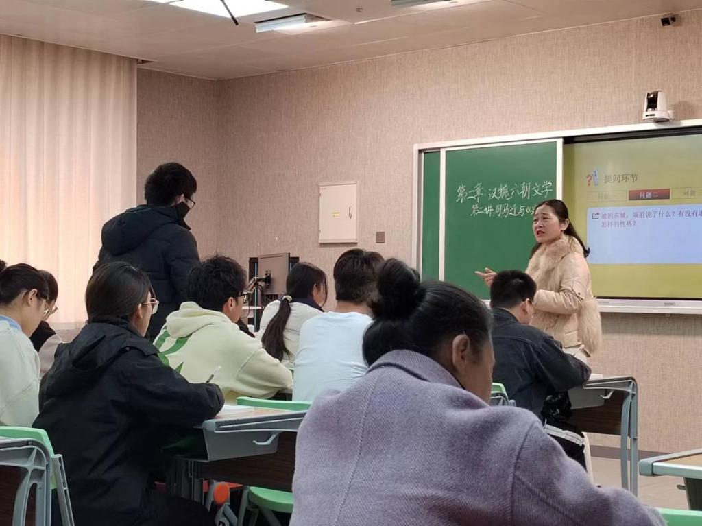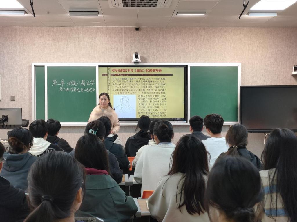 刘晖老师以“司马迁与《史记》”为题进行了教学展示。课堂中,刘老师对司马迁的生平、《史记》的创作缘由、《史记》的体例、《史记·项羽本纪·垓下之围》进行了重点解读,阐述了司马迁忠于史实、秉笔直书的精神,并重点分析了项羽的功过和失败的原因。