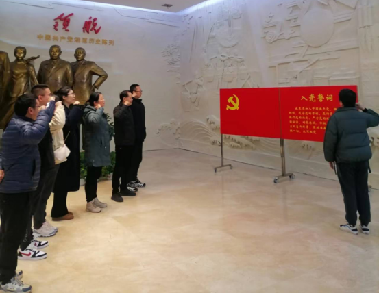 教研室老师首先来到党史馆大厅序厅,重温入党誓词,随后,走进“觉醒”“革命”“建设”“改革”“筑梦”“湘潭群英谱”展厅,认真感悟中国共产党在湘潭的建立、发展和壮大所走过的不平凡历程,以及中国共产党带领湘潭人民进行革命、建设、改革的峥嵘岁月。大家边看边谈,尤其看到钟志申烈士给自己兄弟写的遗言:“我认定,共产党一定会胜利,革命一定会成功。我牺牲生命,把一切贡献于革命,是为了寻找自由,为了全国人民求得解放。” 大家驻足良久,被老一辈无产阶级革命家不怕牺牲、英勇斗争的建党精神深深打动。