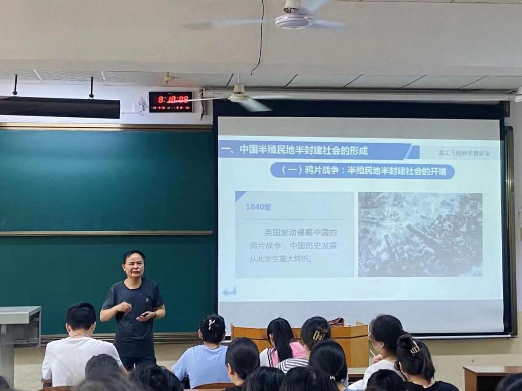 陈坚老师讲授内容为“中国半殖民地半封建社会的形成”,他以问题——“为什么说独立的中国逐步变成了半殖民地的中国?”为导入,引发员工思考,在总结员工回答的基础上,富有逻辑性地讲述了鸦片战争是中国开始沦为中国半殖民地半封建社会的开端,甲午战争的爆发体现中国半殖民地半封建社会性质加强,《辛丑条约》的签订标志着中国完全沦为半殖民地半封建社会,同时从经济掠夺方面以及政治控制方面讲解中国半殖民地半封建性质加强的原因。课堂最后提出问题“怎么正确评价资本帝国主义的入侵对近代中国社会的影响”?作为员工的课后思考题。