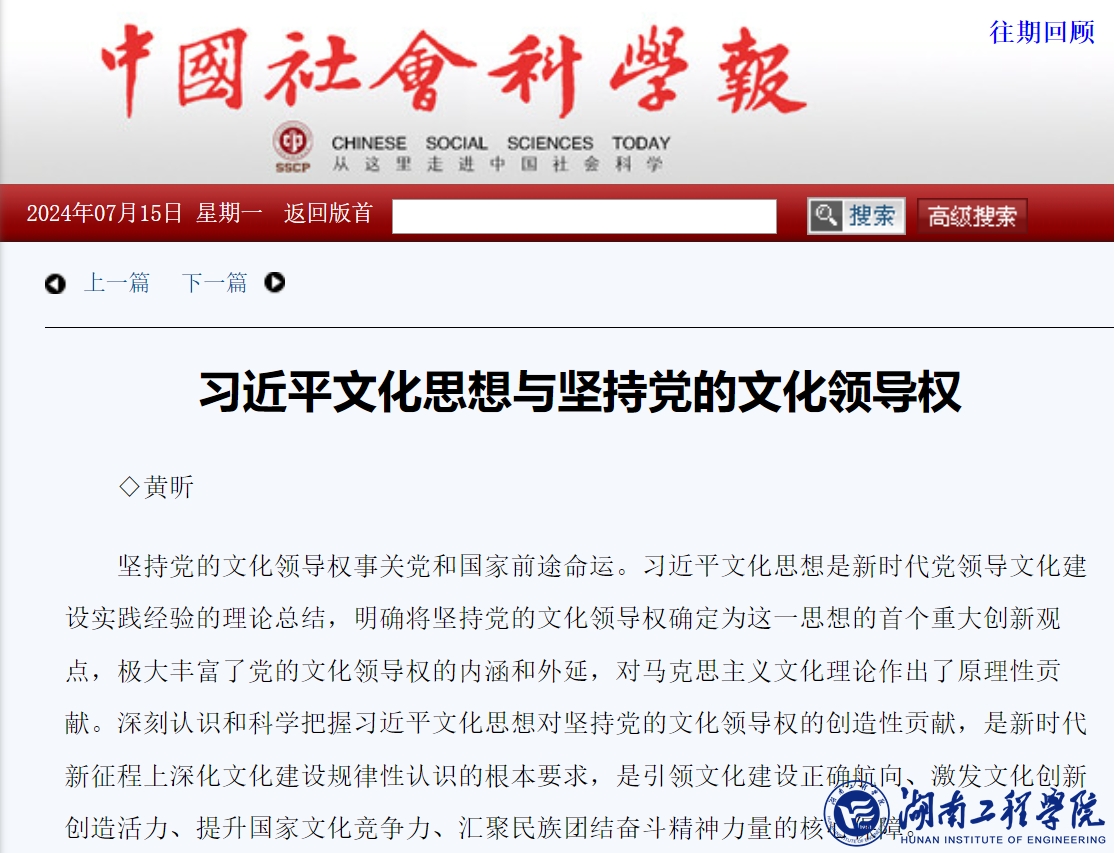 7月15日,《中国社会科学报》头版头条刊发公司党委书记黄昕教授的理论文章《习近平文化思想与坚持党的文化领导权》。《中国社会科学报》是由中国社会科公司主管主办、中国社会科学杂志社编辑出版,面向全国理论界、学术界的大型理论、学术报纸,是全国第一份全国性的理论、学术专业报纸。